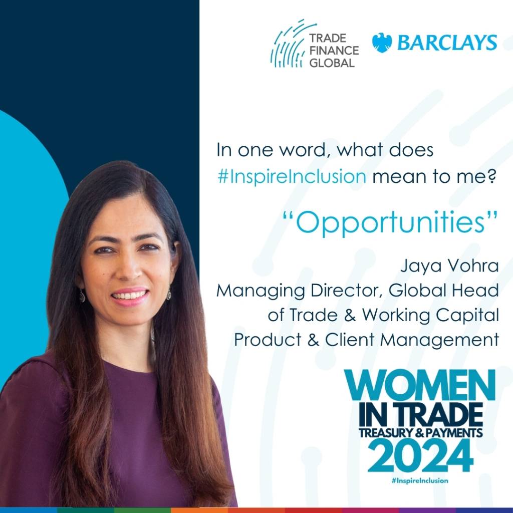 – Jaya Vohra, Managing Director, Global Head of Trade & Working Capital Product and Client Management, Barclays