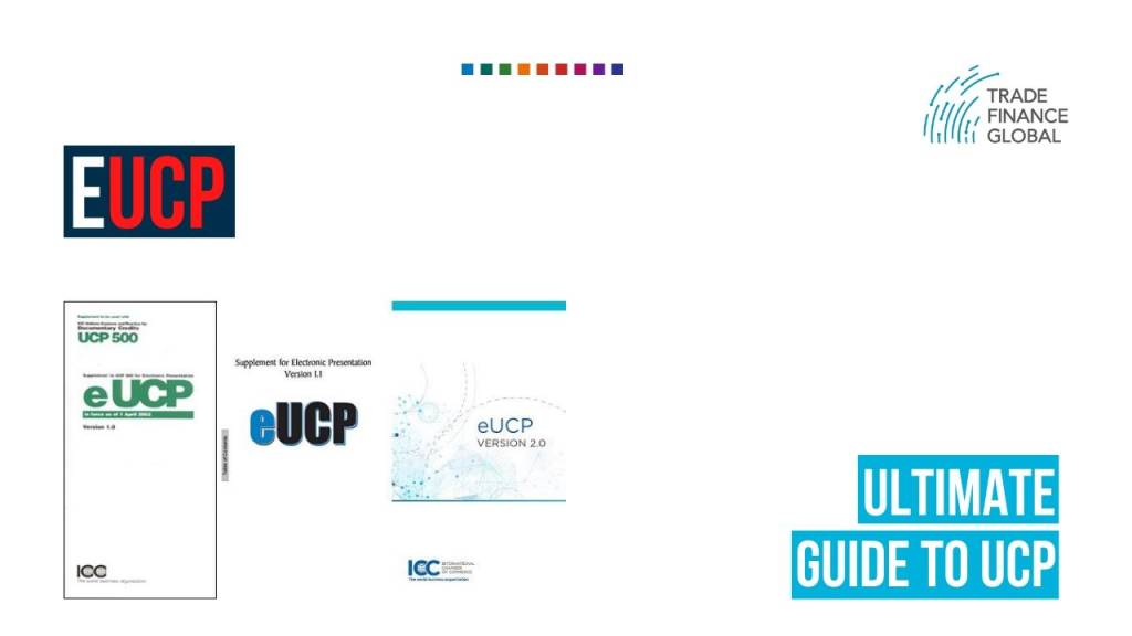 The Uniform Customs and Practice for Documentary Credits (UCP) Supplement for Electronic Presentations (“eUCP”) first published in 2002 as version 1.0 supplemented UCP 500, later updated as version 1.1 in 2007 to accompany the publication of UCP 600 and to bring it in line with the changes in terminology in UCP 600 and recently as version 2.0 in 2019 in order to accommodate current practice, technological developments and the continuing evolution toward electronic presentation. The rules were intentionally developed with version numbers in order to be updated regularly when required according to future technological developments that emerge in trade finance and without impacting upon other existing ICC rules.