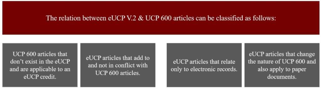 It comprises of 14 articles, in order to avoid confusion between the articles of UCP and the eUCP the articles are numbered with an ‘e’ preceding each article number as the following: