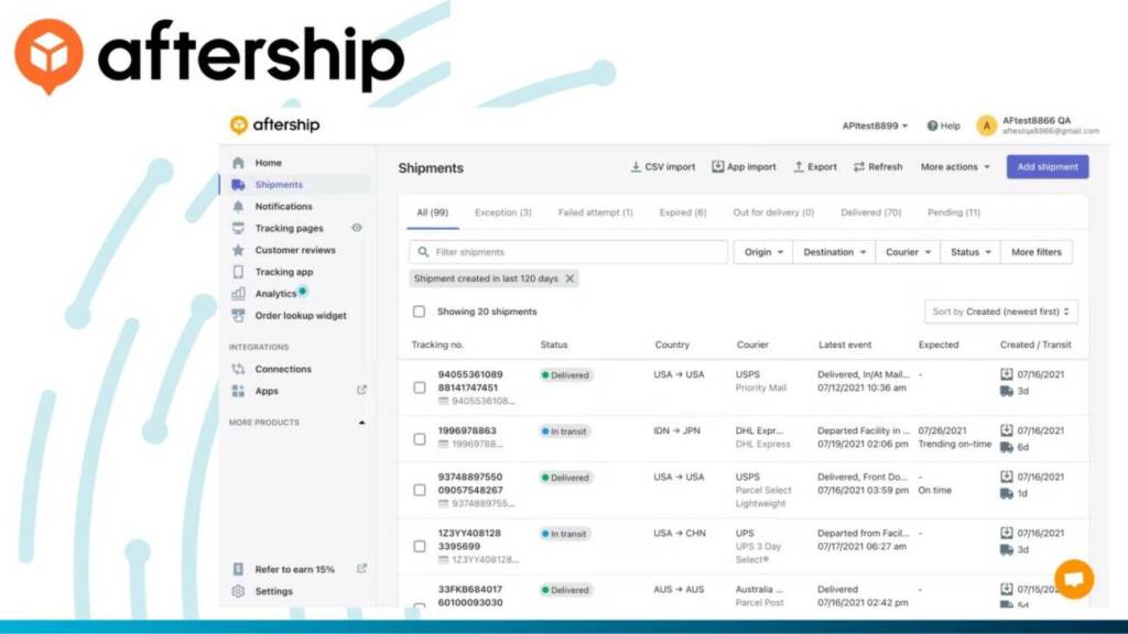 Aftership – Best for enhancing customer experiences, with proactive communication, brand loyalty, and efficient supply chain insights for better shipping decisions.
