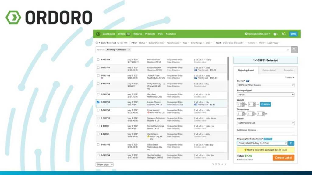 Ordoro – Best for growing merchants, optimising shipping, inventory, and operations.
