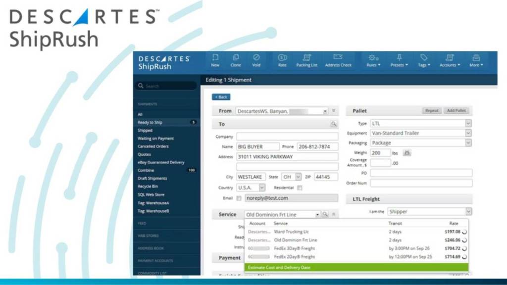 Rate Comparison: It provides a rate shopping dashboard that allows you to compare carrier rates and delivery options side by side, facilitating the selection of the best carrier for each shipment.