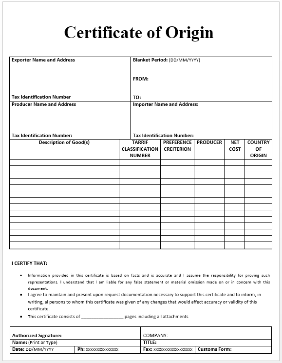 Regional value content rule – The regional value content rule requires a product to undergo a specific amount of value adds in the home country or FTA partner country in order to qualify for an available tariff reduction. Some FTAs also require a combination of the change in tariff classification and regional value content rules to qualify. The shipment of your products must be pre-arranged as the Certificate of Origin requests shipping details.