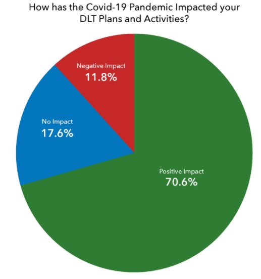 The WTO and TFG have also conducted a survey of firms specifically operating in the Distributed Ledger Technology (DLT) space. The results of this research, which sought to gain a detailed understanding of the impact that the global pandemic has had on DLT projects in trade, is depicted below.
