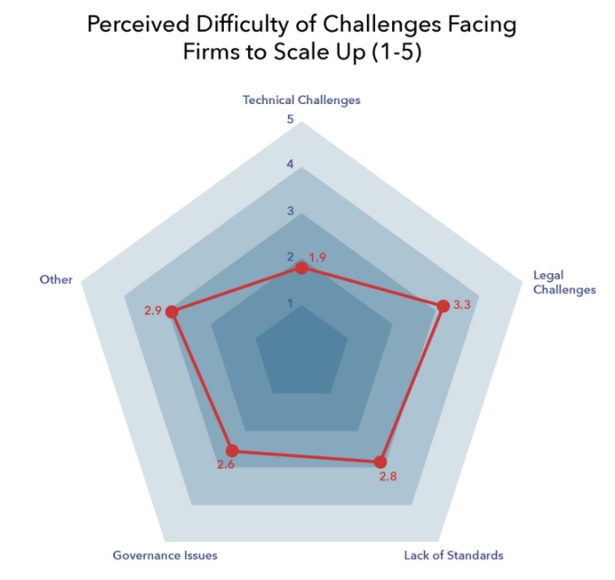 The WTO-TFG survey regarding the impact of Covid-19 on DLT and Trade also sought to understand the various challenges facing DLT firms as they try to scale up their solutions.