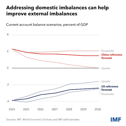 Domestic imbalances contribute to uneven growth, with high consumption in the US, weak demand in China, and subdued manufacturing activity in many economies. Addressing these underlying issues could help offset economic risks and close external imbalances whilst building a more inclusive trading system.